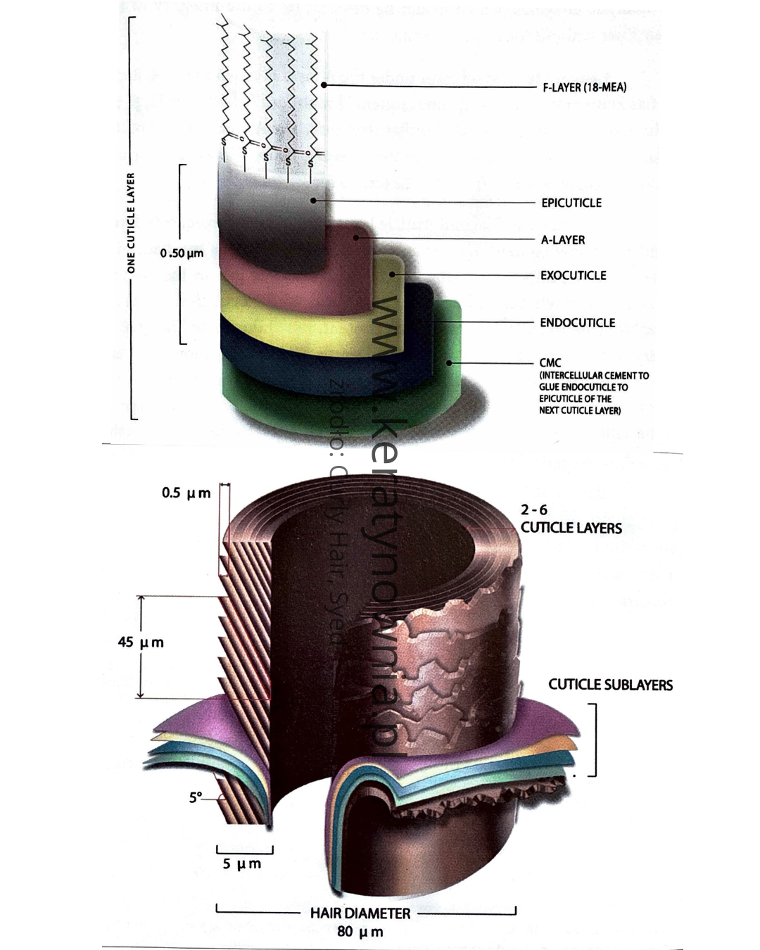 Cuticle, czyli osłonka, to dachówkowata struktura złożona z 5–10 przezroczystych łusek. Liczba warstw łusek różni się w zależności od rodzaju włosa oraz jego kondycji - na końcach warstw może być mniej w porównaniu do nasady, co wynika z uszkodzeń mechanicznych, chemicznych, słońca, czy po prostu codziennego użytkowania.