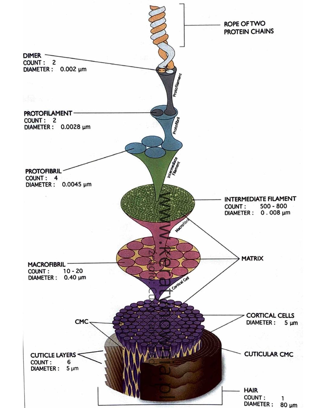 - Zewnętrzna warstwa zawiera aż 30% cystyny – jest więc najbardziej odporna,