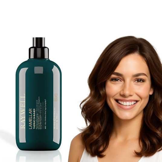 Raywell B.io Lamellar Thermo Shimmer to profesjonalny spray termoochronny, który łączy ochronę cieplną do 230°C z efektem intensywnego połysku. Dzięki technologii lamelarnej, produkt tworzy na włóknie włosa lekką, ochronną warstwę, która przeciwdziała uszkodzeniom termicznym oraz wygładza powierzchnię włosów, zapewniając im lśniące wykończenie.