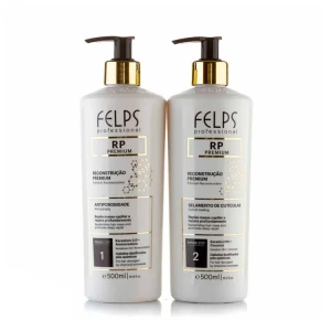 Felps RP Premium to innowacyjny produkt do odbudowy włosów, zaprojektowany specjalnie do zabiegów odbudowy na zimno. Można go stosować do przygotowania włosów przed prostowaniem. Jest to zestaw składający się z dwóch etapów: preparatu aktywnego i preparatu wykańczającego. Ta wyjątkowa formuła zawiera 9 aminokwasów, które zapewniają maksymalną regenerację włosów i eliminują uszkodzenia chemiczne. Ta aminokwasowa odbudowa włosów nadaje się nawet do afro loków.