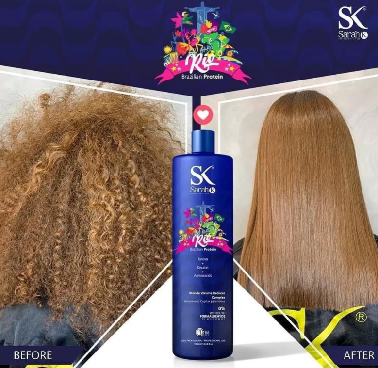 Proteiny Prostujące Nanoplastia SarahK RIO BLOND 1L -Rio to produkt bez formaldehydu, stworzony specjalnie do włosów blond lub rozjaśnianych.